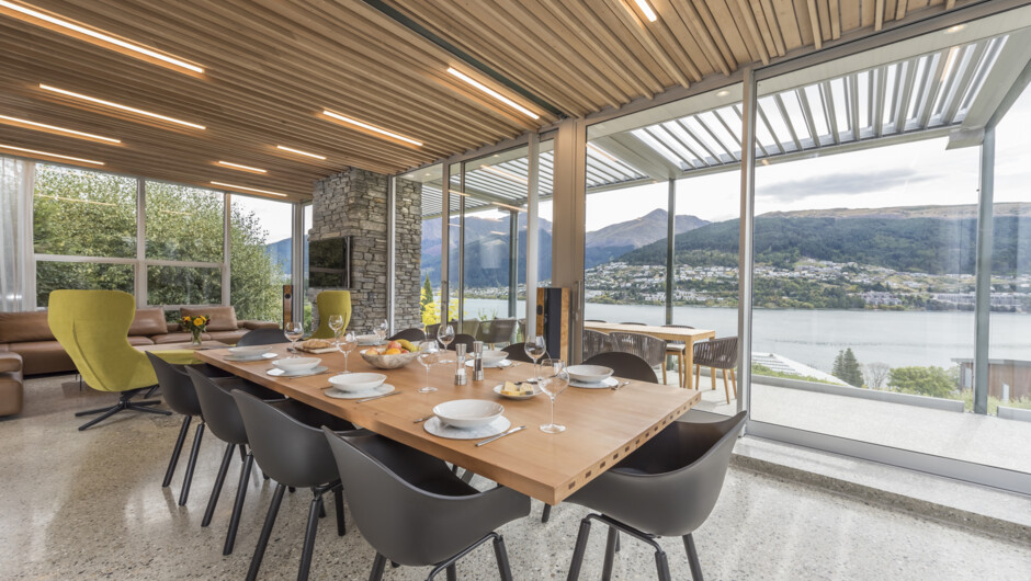 This luxury modern villa takes full advantage of all-day sunshine as well as amazing views of Lake Wakatipu and mountain ranges. With five bedrooms and four bathrooms, Shimmerlake comfortably accommodates 8 people with plenty of space.