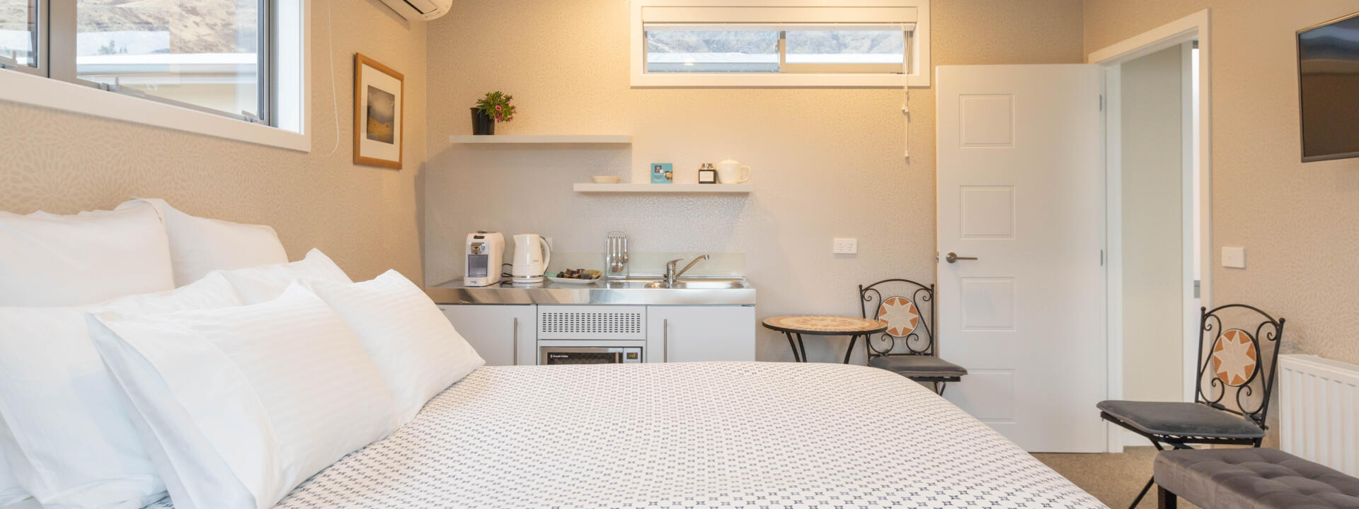 Modern self-contained accommodation in Arthurs Point, Queenstown for up to two guests. Awesome mountain views. Near to Shotover Jet, Onsen Hot Pools and the access road to Coronet Peak Ski Area.