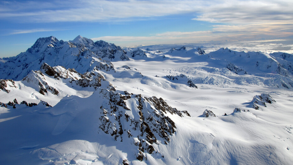 This scenic flight over the Southern Alps gives you the opportunity to 'see what is on the other side' without the 8 hour drive between Lake Tekapo and Franz Josef. Ideal for travellers with limited time. One way or return flight options.