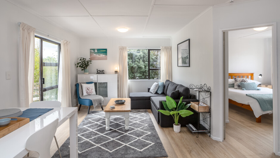 This beautiful, light filled, modern residence is perfectly situated near the heart of Martinborough. Walking/biking distance to the local wineries and shops. 2 bikes provided. Tui Cottage gets fantastic sun and there is seating outside on the deck.
