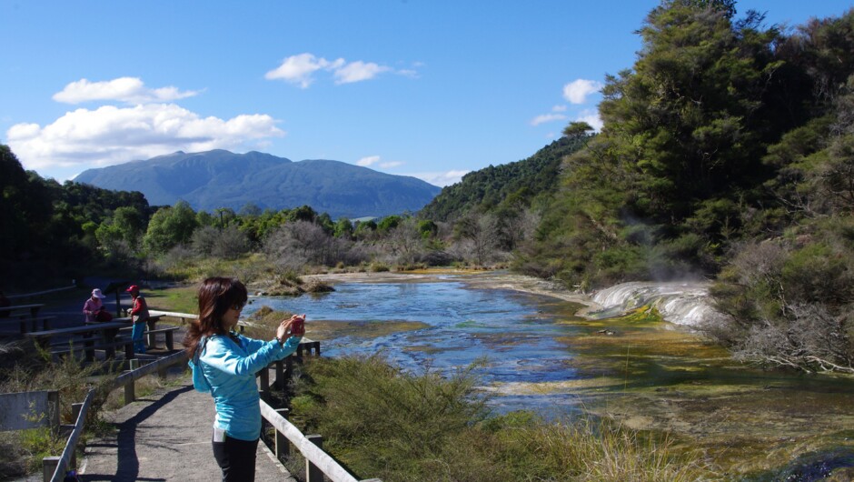 时长从 45 分钟至 4 小时以上不等的轻松散步、登山以及乘船巡游,让罗托鲁瓦怀芒古火山谷成为一个适合任何年龄和体能水平的游客的地热目的地。