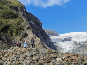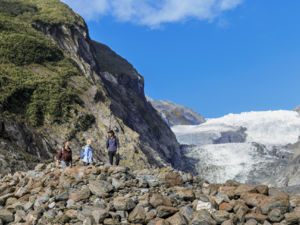 Es gibt mehrere Möglichkeiten, die Gletscher zu erkunden. Man kann zum Endpunkt der Gletscher laufen oder durch das Buschland zu einem der Aussichtspunkte wandern. Eine weitere Option ist eine geführte Gletscherwanderung, bei der die für das Eisklettern nötige Ausrüstung zur Verfügung gestellt wird. Wer es bequemer mag, kann die Gletscher bei einem Rundflug mit dem Hubschrauber oder einem kleinen Flugzeug aus der Luft betrachten.