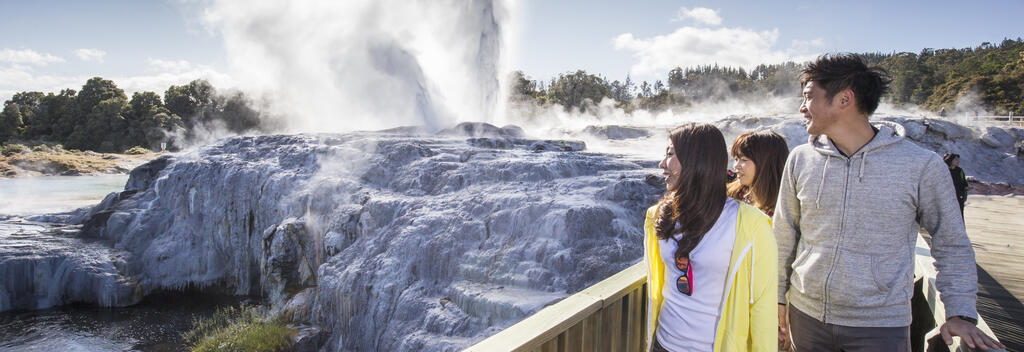 Geysire, brodelnde Schlammbecken und Vulkankrater: in Rotorua bahnen sich die Kräfte der Natur blubbernd, dampfend und zischend ihren Weg an die Erdoberfläche. Begib dich auf Erkundungstour in dieser mitten auf dem Pazifischen Feuerring gelegenen Stadt.