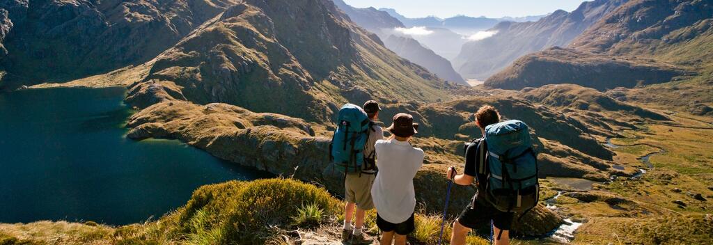 Mit hohen Berggipfeln, riesigen Tälern, Wasserfällen und funkelnden Seen verbindet dieser Wanderweg Mount Aspiring National Park & Fiordland National Park.