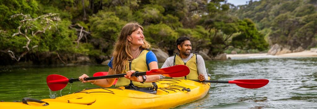 Der Abel Tasman National Park liegt am oberen Ende der Südinsel und kann zu Fuß, mit dem Boot oder Kajak erkundet werden. Die geschützten Buchten des Nationalparks eignen sich hervorragend zum Segeln und Seekajakfahren und bieten auch Gelegenheit, die Robben und Delfine zu sehen, die regelmäßig in diesen Küstengewässern spielen. Wenn du es vorziehst, den Nationalpark zu Fuß zu erkunden, dann mach den Abel Tasman Great Walk. Er folgt der Küstenlinie durch einheimischen Busch, entlang von spektakulären Kalksteinklippen und Stränden.