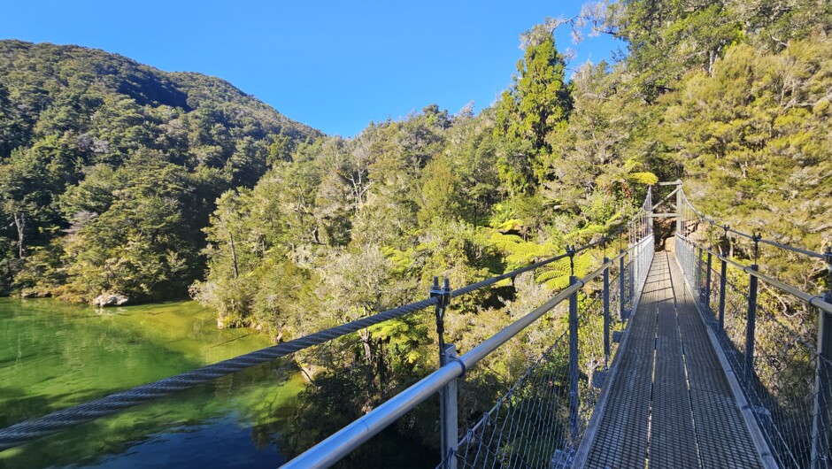 The Discoverer Day offers all the best the Abel Tasman has to offer with a Full Park Scenic Cruise, visits to Split Apple Rock and a Fur Seal colony, golden beaches, forest walking and wildlife encounters all in one superb day out. Option B: Forest and Swing Bridge. Enjoy a full Park scenic cruise, then we drop you off at Medlands Beach at 11:30am for a rewarding and varied walk to Anchorage Beach including the scenic highlights of the South Head lookout, the famous Falls River swing-bridge & maybe Cleopatra's Pool. Walking Distance: 10.5km. Walking Time: 4 hours. Suitability: comfortable walking on easy tracks. Bring a light day pack with water and sunblock.