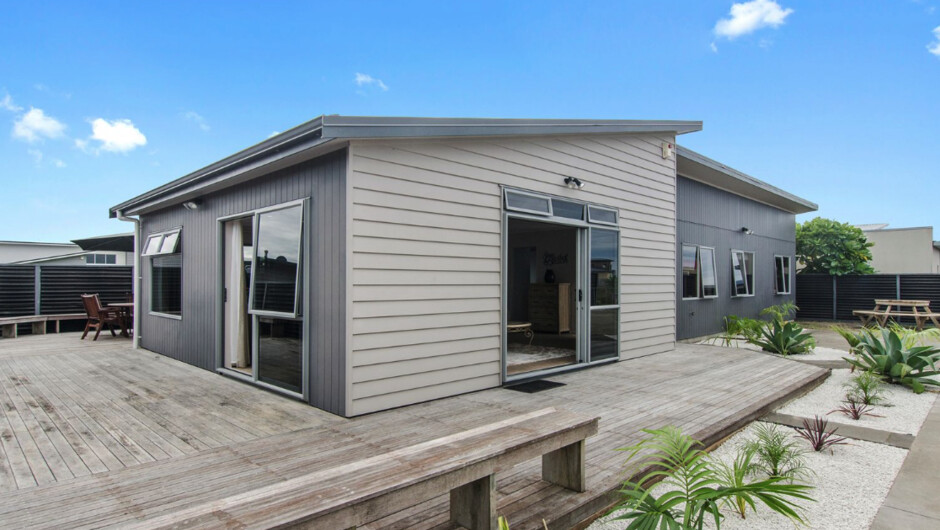Beauty on Bream Bay is a 4 bedroom 2 bathroom Ruakaka holiday home. This modern home has ample space, and sits in an ideal location just a stone's throw from the oceans edge, making it the perfect spot for your next family or group beach retreat.