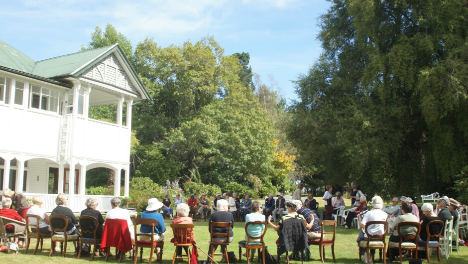 The garden has several original native trees including one of the southernmost kauris, many rare native bellbirds, & the original large fruit orchard. The azaleas and rhododendrons are original to the house, brought to New Zealand by Thomas Potts himself. There are a number of structures: a gazebo, a folly, a rotunda and also a pond under reconstruction.It was established 1912 by Millicent Hall, daughter of TH Potts, one of New Zealand's most renowned early botanists & conservationists, & her children. The Lodge is set in 30 acres of grounds at feet of Mt Hutt with a grand view, mature trees, new plantings and farmland. The chicken run features Araucanas, Rhode Islands, Plymouth Barr Rocks and lots of Shavers. A history talk is available.
