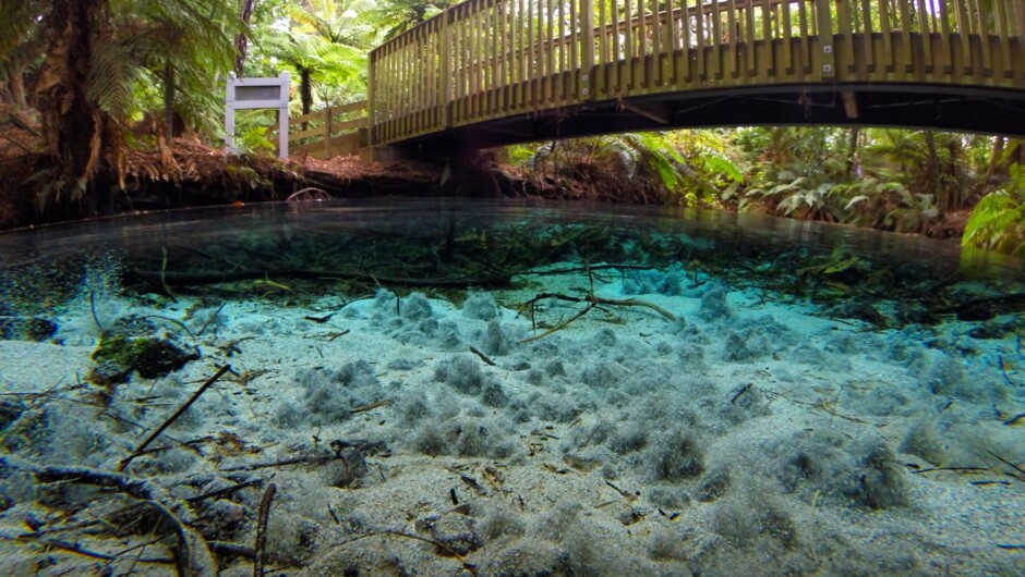 Hamurana Springs is a magical riverside walk through 100-year-old redwood trees that gives you direct access to the deepest natural fresh water spring in the North Island of New Zealand.
