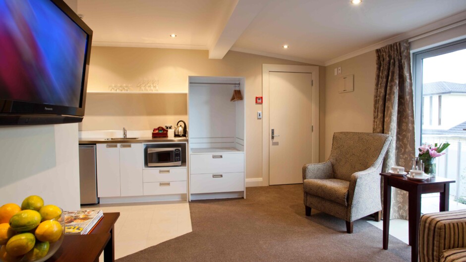 15+ Years young. Built for the traveler wanting home comfort. The businessperson requiring comfort but also functionality. Close to the town attractions and restaurants. Each room is well-appointed with their own spacious desk directional lighting, own WIFI access point. Full kitchen with hobs microwave and extractor fans. While furnished with a small table and chairs and armchairs, they also include a quality attired bed and a smart television to watch SKY or Netflix. Sixteen of the eighteen rooms have large double spa baths with high pressured showers overtop. Windows are double glazed and dressed in heavy drapes for added quietness. Several rooms are off the main road, for that extra private feel.
