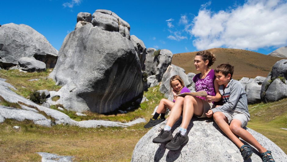 Leaving Christchurch, we head west towards the mountains across the flat farmland of the Canterbury Plains. After 45 minutes we make a stop in the small farming town of Darfield. Continuing our journey across the plains, we pass through another small town named Springfield with its giant doughnut. Your guide will explain how the giant doughnut ended up here while snapping a photograph. From Springfield, it’s a 45 minute drive along “the Great Alpine Highway” to Castle Hill/Kura Tawhiti conservation area. The road takes us over Porters Pass (900 metres), past Lake Lyndon and through some High Country stations before reaching the giant boulders at Kuratawhita/Castle Hill Reserve. Lunch will be provided before heading back to Christchurch.