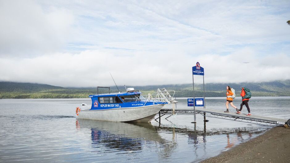 Water Taxi Times: Departures at 8:30 am, 9:30 am, 10:30 am. Returns at 2:30 pm and 4:30 pm. Book now to experience the stunning Kepler Track.