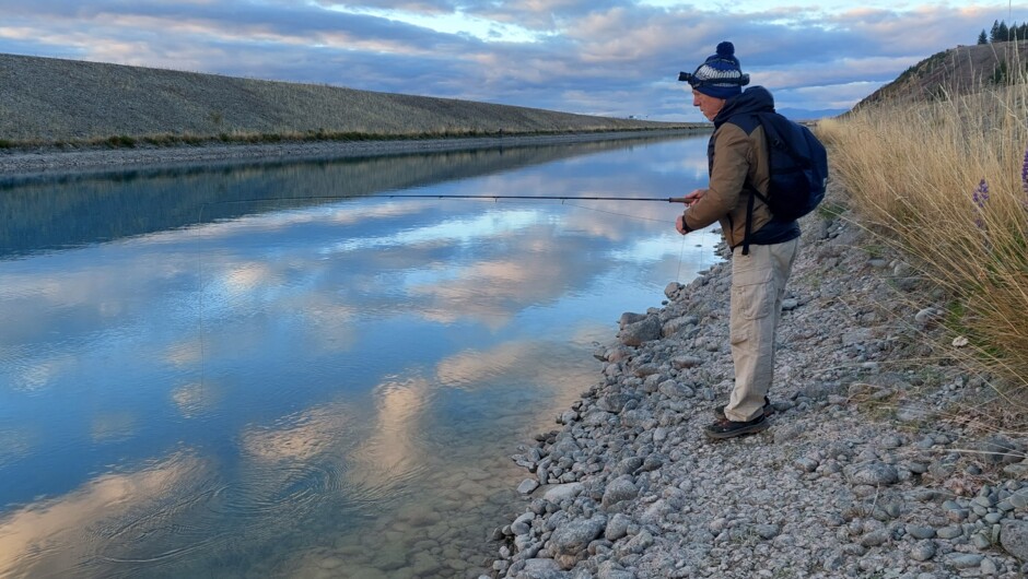 Located in the spectacular Mackenzie High Country, the crystal clear waters of the Lake Tekapo Canal are home to both Brown & Rainbow Trout, and Chinook Salmon. Easy access combined with large fish and outstanding natural beauty make the Lake Tekapo Canals one of the most popular freshwater fishing spots in New Zealand and offer anglers the opportunity to bag the catch of a lifetime. Trout weighing more than 4.5kg are common, whilst larger Trout weighing 10-13kg do get caught occasionally. The Canal Salmon weighs in between 1-4kg. Join our 2-hour tour Lake Tekapo Canal Fishing Tour and let our experienced fishing guides teach you all the skills required to catch one of these monsters.