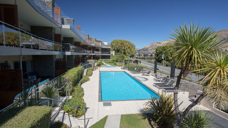 Relaxation, romance, business, adventure - whatever your reason to visit Wanaka, these spacious and serviced apartments can cater for your every need. Enjoy awesome views of Lake Wanaka and the mountains beyond, while relaxing on your private balcony. All apartments have a designer kitchen, two bathrooms, including one ensuite and one with spa bath, spacious living and dining areas and secure garages. Facilities on site include swimming pools (heated in summer), spas and BBQ area. Within two minutes walk are Wanaka’s restaurants, cafes, bars and shops.