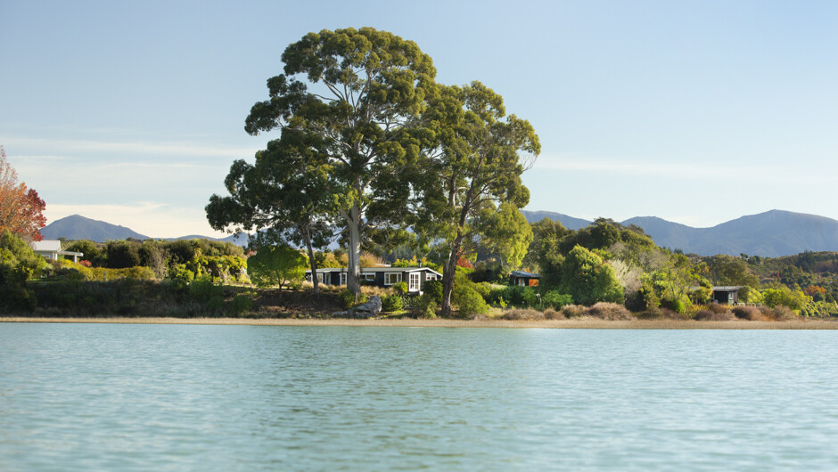 Discover Māpua accommodation at its finest with three private, self-contained cottages nestled in a wild natural setting on the shore of the beautiful tidal Waimea Inlet. Panoramic views across the estuary to mountains, vineyards, and orchards.