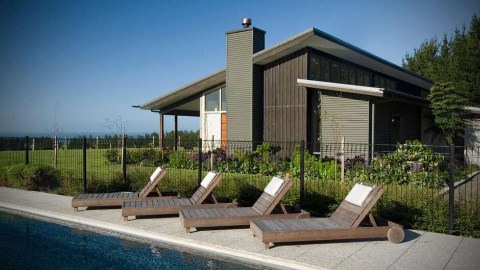 Millar Road offers seriously stylish accommodation on a beautiful vineyard estate in Hawke's Bay with panoramic views taking in mountain ranges, Hawke’s Bay wine country and the Pacific Ocean.