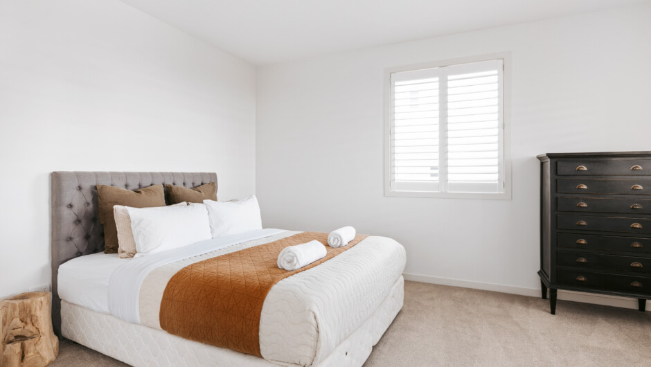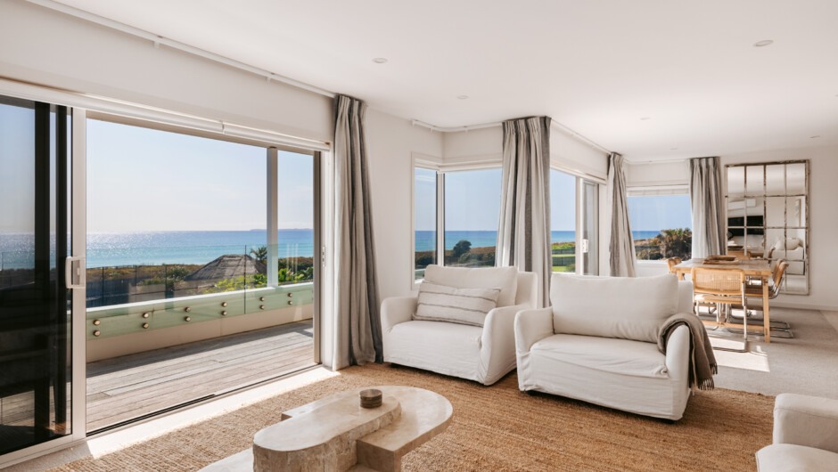After a day at the beach, unwind in your private spa, fire up the BBQ in the shared area, or challenge someone to a game on the tennis court - the options are endless. Only a 5-minute walk from Papamoa’s Coast Boulevard, with local supermarkets, a great restaurant, and one of our favourite cafes, Pearl Kitchen. The fully equipped kitchen is a space you’ll love. Cook up a meal while engaging with guests in the dining and lounge area or simply take in the breath-taking ocean views. The property includes an outdoor shower to rinse off after a surf, and a private lawn for the kids to play on. The balcony offers the best seat in the house, perfect for soaking in sunrises over the ocean and sunsets behind Mount Maunganui.