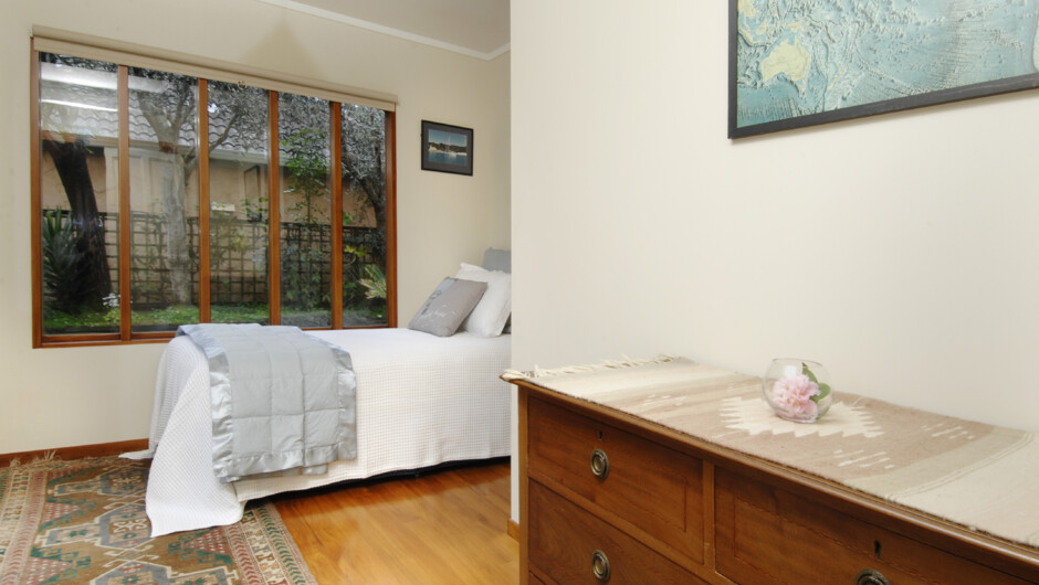 We offer a 2 bedroom, Boutique suite (comprising 1 Queen and 1 Single) adjoining the fabulous 3km Orewa Beach, with your own separate level entry through a private and secure garden courtyard. Off-street parking for your vehicle is immediately in front of the house and is security lit. NB: You will be the only guests over your booking period. We will guide you through a very memorable holiday experience here at ‘Orewa Beachside’. There are many excellent restaurants within a short walk down the beach but for those of you that do wish to self cater (light catering), along with the kitchen facilities there is a barbecue available on the upstairs deck for your use by arrangement. There is also a laundry/ironing facility for your use.