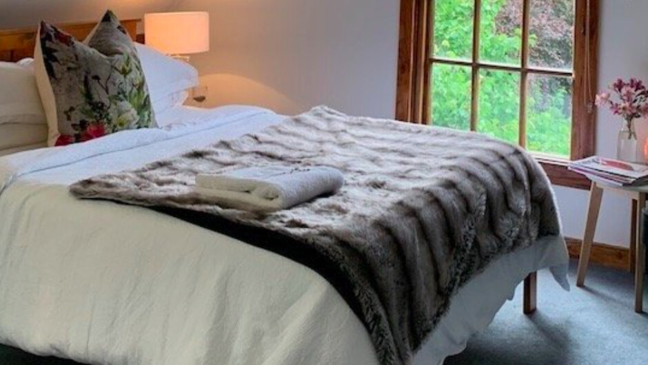 Our guests quickly fall in love with absolute country luxury of Lavender Cottage with it’s airy barn-like feel. Wake up to the sounds of bell-birds, distant lambs and pretty views of Mount Heslington. You will delight in the cottage’s many details which make your stay as relaxing and pleasurable as possible. Enjoy the luxurious slipper bath with candles & our Lavender oil.