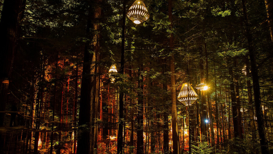 Redwoods Nightlights is a unique Kiwi design-led tourism experience, featuring 34 lanterns by world-acclaimed designer and sustainability champion, David Trubridge.