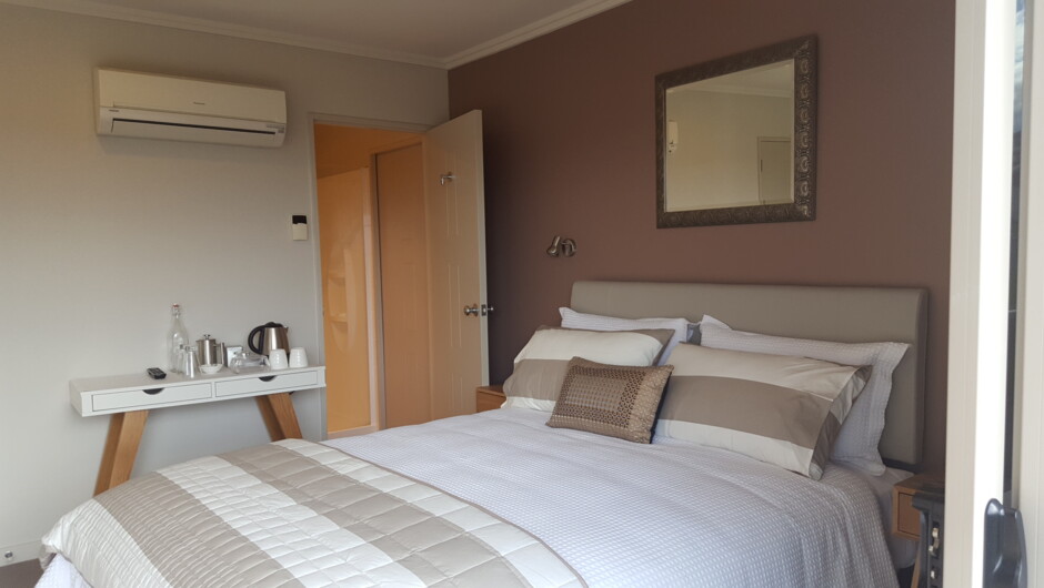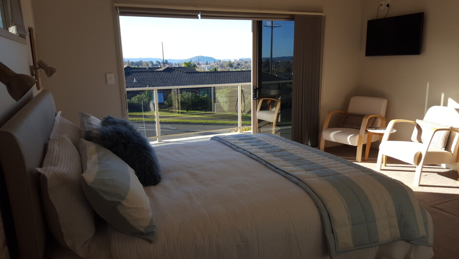 The ensuited B&B rooms are on the first floor with stair/lift access. One has a queen bed (Matipo) and the other a king (Pukehangi). Both rooms have balconies with outdoor furniture and wide views of Rotorua. Other facilities include: tea/coffee making facilities, aircon/heating and a fridge. Choose from a menu and build your own sumptuous breakfast. The self-catering apartment is downstairs and has its own entrance. It has two double bedrooms with flexible sleeping arrangements, a living area/kitchenette, and bathroom/laundry. The apartment can sleep up to 4 people and children are welcome. Note breakfast is not included. There is free WIFI and access to Netflix throughout the accommodation and free off-street parking.