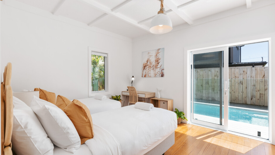 Escape to Papamoa paradise, where tranquillity meets luxury in this three-bedroom beach bungalow with a bonus sleepout, pool, and spa. Tucked away at the end of a shared driveway, this stylish retreat is designed for relaxation.
