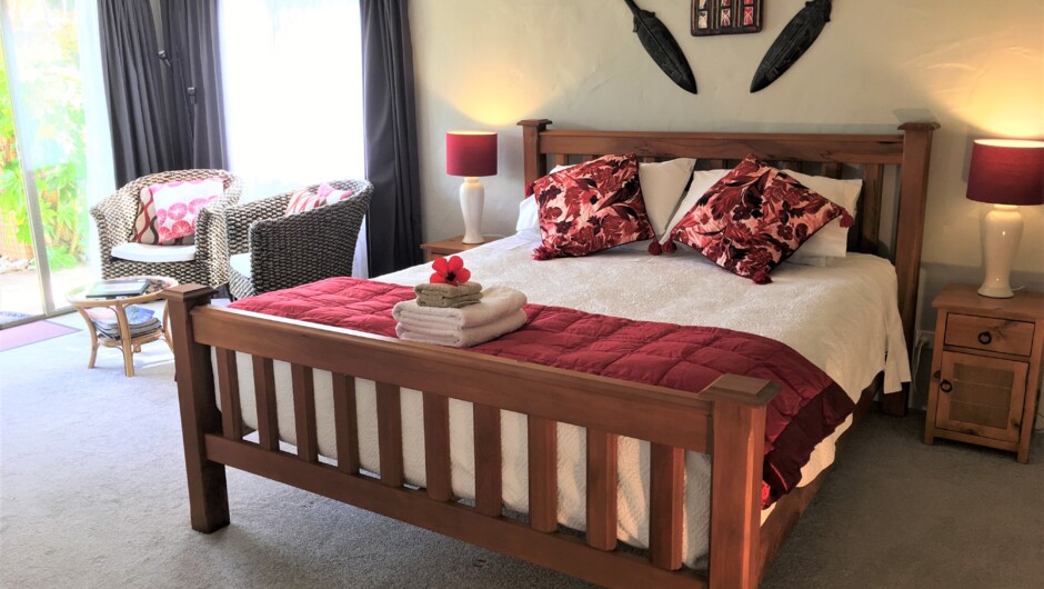 Set in a beautiful garden with a white sand beach a very short walk away, this is a great central location for exploring the area and all it has to offer. Spacious, sunny bedrooms, ensuite, private entrance. A place to relax and enjoy great food.