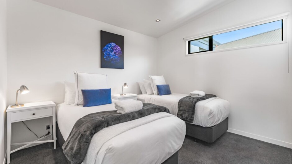 This modern three-level apartment offers a luxurious stay for any occasion. The ground floor features a garage with internal access and a private bedroom with an ensuite, ideal for guest privacy. On the second floor, you'll find the main living area, a fully equipped kitchen with a coffee machine, and a separate toilet. This level also boasts an outdoor dining area with lake views, along with a private back garden patio complete with a BBQ and fireplace. The third floor hosts two additional bedrooms, one with an ensuite, and a separate bathroom, along with another cozy living room. With a lift for easy access, this apartment combines luxury and convenience. Located just a 10-minute walk from Two Mile Bay Sailing Club.