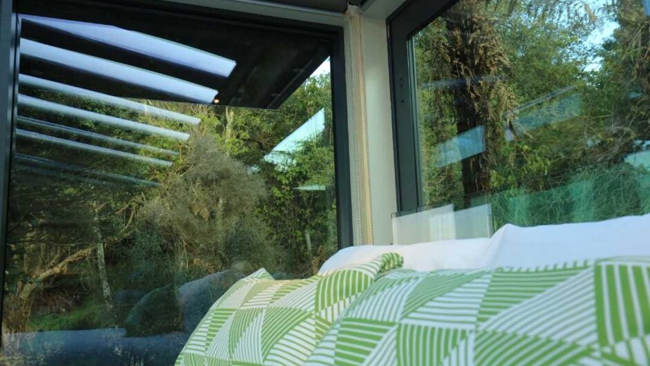 PurePods is an uninterrupted, unfiltered and unforgettable experience of your own slice of New Zealand beauty. Your PurePod is made of heavy duty glass so you can see everything - from the heavens above to the native plants growing beneath your feet. Pull back the sliding doors on all three sides and indulge in all that mother nature has to offer. Sustainable luxury: The PurePod is designed from the foundation up for environmental sustainability. Pass through a predator-proof fence and walk into an eco-sanctuary to see your PurePod nestled within the bush. Discover your own isolated slice of Kiwi paradise, revel in the birdsong all day long and, at night, spot kiwi & explore the stars of the southern sky from the comfort of your luxury bed.