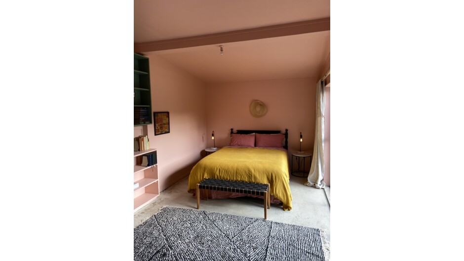 Let your stress dissolve surrounded by nature on the outskirts of a small and friendly Northland village. Trounson Kauri Park is just 4km, Aranga Beach 10 min, Kai Iwi Lakes 15min, Tane Mahuta 25min. The Sunday School has been renovated with an eco conscious philosophy. Designed by Architect Barry Rusden in the 1980's as a Church with a modest black corrugated iron exterior houses a beautifully restored and considered interior. Original concrete floors are a perfect foil for the earthy pink and terracotta interior palette The generous spaces, high stud and large windows create a very relaxing light filled and airy atmosphere. The handmade Matakana clay hexagonal terracotta tiled shower has beautiful exposed copper plumbing.