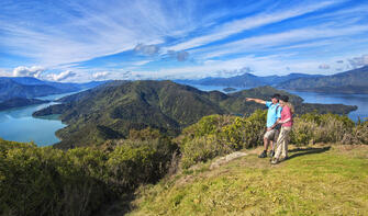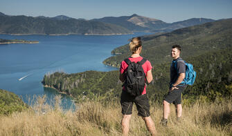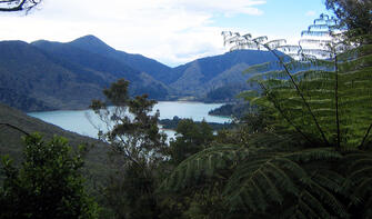 Traumhafte Wanderung oder Radtour durch Naturwald bei traumhaften Ausblicken auf die Marlborough Sounds. Option auf Gepäcktransport per Wassertaxi.