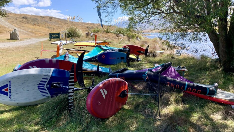 Lake Clearwater, less than 2 hours drive west of Christchurch, is well known in New Zealand for windsurfing and wingfoiling. The strong Northwest wind funneling down the mountains and the more gentle Easterly thermals coming up the valley on sunny days in summer make it the perfect playground for windsports. The area also offers fantastic hiking and mountainbike options in case you want to mix it up. For this Surfari Trip we base ourselves at the campground right at Lake Clearwater – bring your own accommodation (RV, van, caravan and tent), breakfast and lunch, and Water Nomads takes care of the rest.