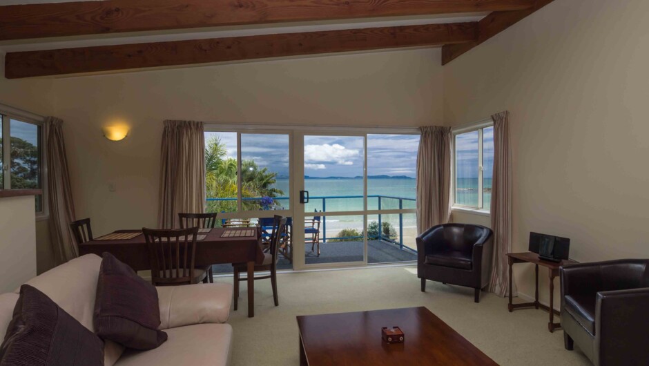 room leading to large deck overlooking the sea. Full kitchen and own laundry.