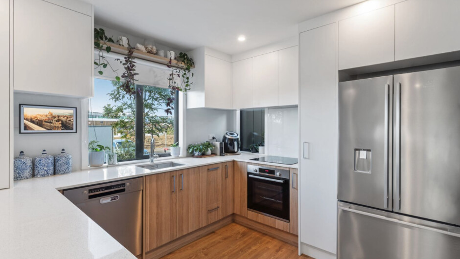 Step into this serene retreat, thoughtfully equipped with all the essentials for a seamless stay. The modern kitchen and expansive dining area are a culinary enthusiast's dream, boasting top-notch appliances including an air fryer, Kenwood mixer, and food processor. Flowing effortlessly from the living area is a sun-drenched outdoor deck, perfect for soaking up the morning rays. Unwind in the warm and contemporary ambiance of this light-filled sanctuary, where indoor and outdoor living spaces seamlessly blend together. Every detail has been carefully considered to ensure your utmost comfort, including a heat pump on each level, providing cosy warmth for relaxed evenings.