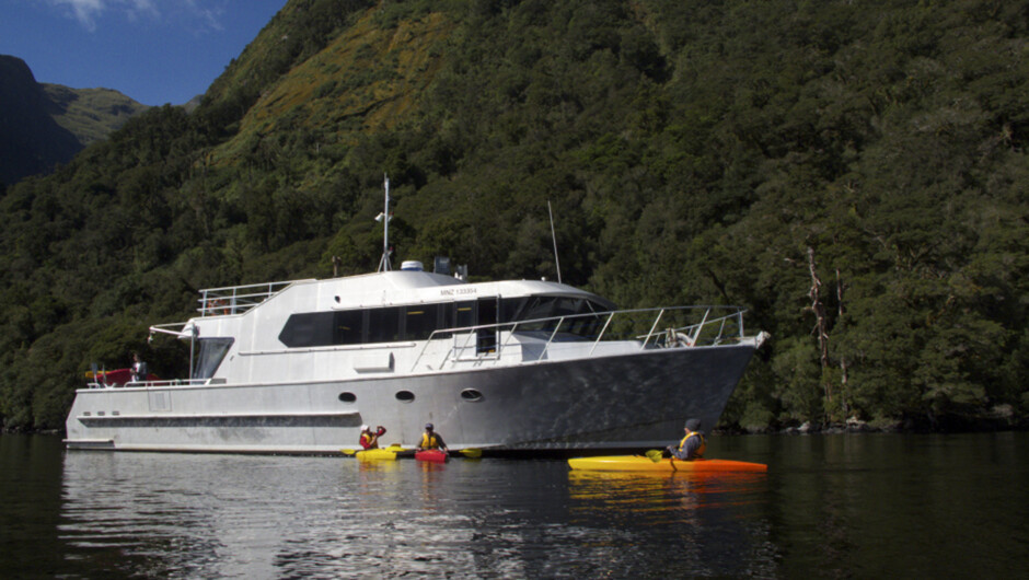 We look forward to you joining us as we wind our way around Doubtful Sound aboard SEAFINN. Look out for dolphins, seals and even deer. Try your hand at fishing and/or paddle with nature in one of our kayaks.