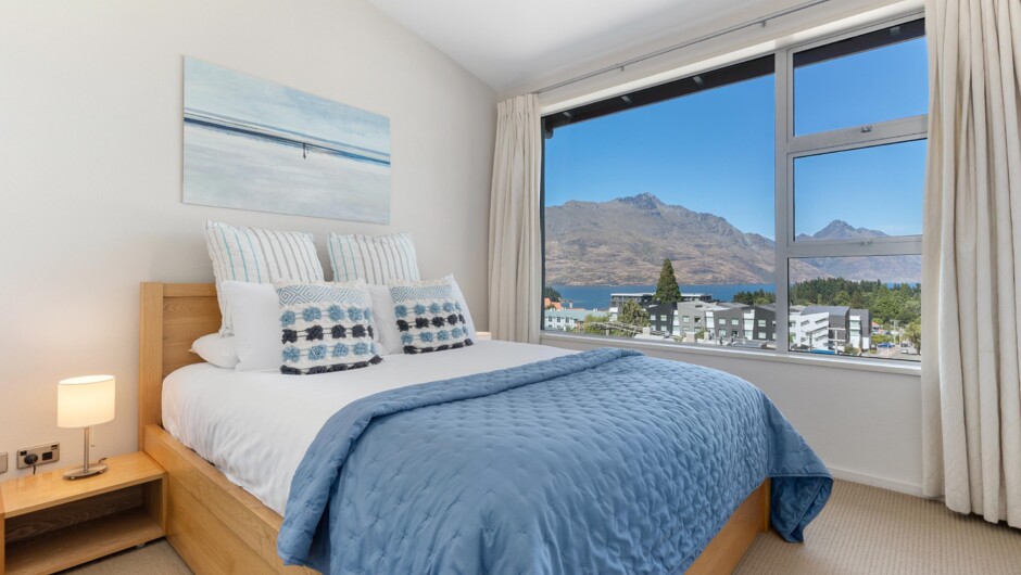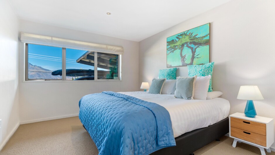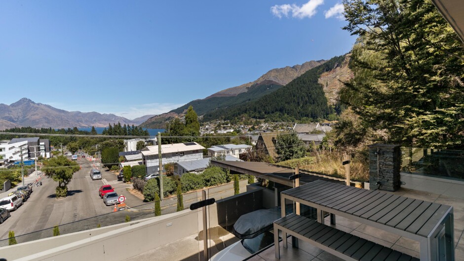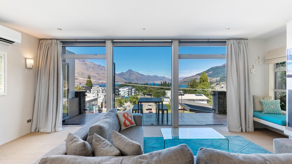 Indulge in the epitome of luxury across three levels of contemporary living. With three spacious bedrooms, each boasting en-suite bathrooms, this luxury central Queenstown accommodation ensures a comfortable and memorable stay. The twin sets of patio doors open onto an expansive private balcony with BBQ which overlooks Queenstown’s gardens as well as the crystal blue waters of Lake Wakatipu. Every room in this fully double-glazed luxury central Queenstown accommodation features controlled heating, with wall mounted heat pump and gas fire place in the lounge for extra warmth.