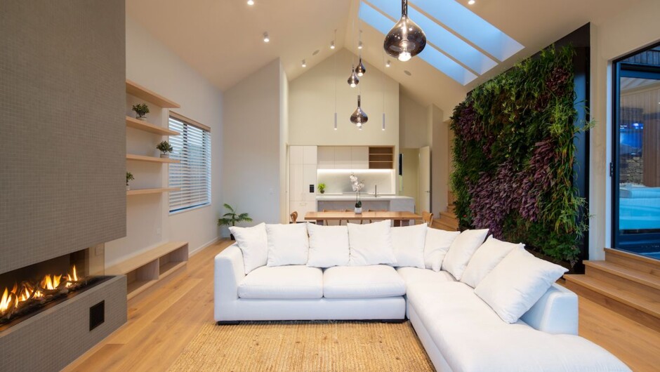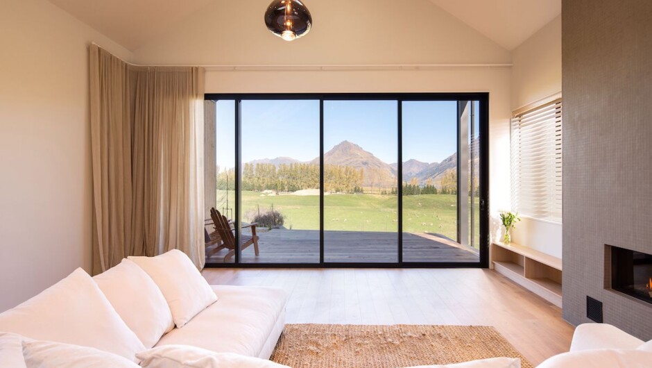 This beautiful 5-bedroom villa is perfectly located to enjoy lake and mountain views, maximising the sunshine from all angles and creating a real feeling of nature and calm. With paddocks of sheep on the back doorstep, Lake Wakatipu on the horizon and mountains on all sides, this villa is a true New Zealand gem. With a huge focus on nature, the owners of this property have focused on simplicity and the surroundings wherever possible, the floor-to-ceiling indoor plant wall is an absolute highlight and the majestic mountain views really turn this property from a villa into a retreat.