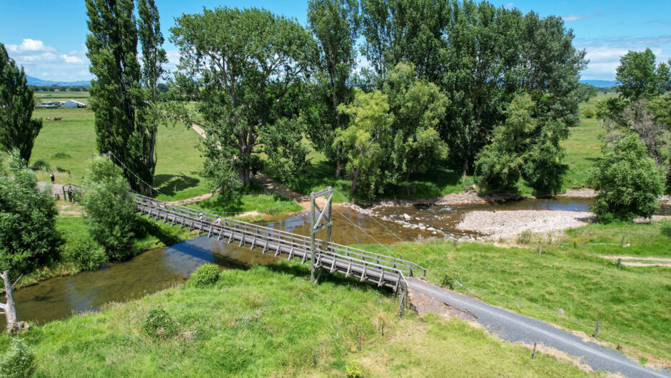 Converted rail trail, flat, light gravel or trampled earth, maintained, no cars. Well signposted. Lunch voucher for the Cheese Barn, a cafe with a cheese factory and some animals close to the beautiful al-fresco dining area. Great for adults and children. Meal voucher up to $25 included (cheese platter, pizza, cake etc). Artisan cheese for sale.