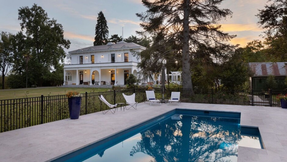 Mt Vernon Villa is a very special luxury character home, with high ceilings and historic features. This luxurious villa offers a relaxing haven in a beautiful, peaceful location. Immerse into the rich history of the property or explore the local area with fishing, golfing, hiking and wineries nearby. The main floor has a grand sitting room and opens out onto a long verandah. The Study has over 2000 books and is a nice intimate room ideal for some reading or peaceful reflection. There is also a day lounge which opens to the courtyard. The modern kitchen is perfect for foodies and connects to the formal dining room. The 6 bedrooms are all spacious, and there are 5 en suites plus a separate bathroom.