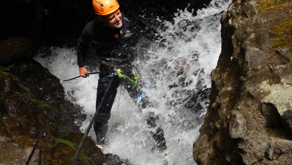 Allow around 5.5 hours from Auckland, return. Or if meeting in Piha, then around 3 hours. About 1.5 hours of this time is spent exploring the canyoning. But before you get to that, its gearing up and training with the guides and a beautiful bush walk into the rainforest. This trip includes abseiling through waterfalls, jumping into canyon pools and exploring the water carved rocks. After the canyoning, there's time to visit Piha Beach before returning to Auckland.