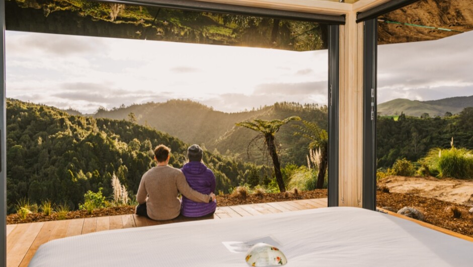 Located just a 90-minute drive from Auckland, Ruru offers the perfect escape from the hustle and bustle of city life. The walk to Ruru PurePod is approximately 600 metres and takes you through the farm. As you make your way you’ll see Mount Karangahake standing tall in front of you. Birdlife you may hear or see on your walk to the PurePod include the Kereru, Tui, Fantail and Kingfisher. Facilities include a fabulous shower, flush toilet, crisp linen, cooking and eating equipment including a gas hob and barbeque, tea coffee and milk; as well as an assortment of games, local reference books, and a telescope. So sit back, relax in the luxury camp chairs out on the deck, or laze in the super comfortable bed and watch nature put on a show.