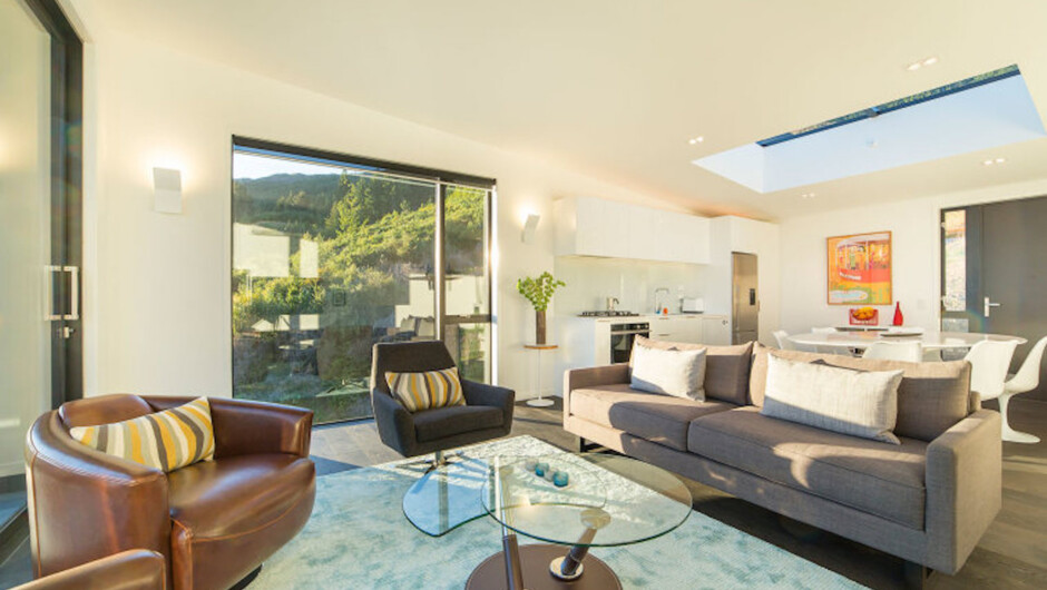 Simply a perfect haven to relax and unwind after a day on the slopes. This eco-friendly space encompasses views of Lake Wakatipu and the surrounding mountain areas.