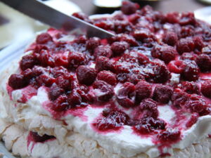 The pavlova has long been at the centre of a trans-Tasman argument. Both New Zealanders and Australians steadfastly maintain they invented it. The first appearance of the recipe in written form was in a New Zealand cookbook in the early 1930s. Surely it is obvious that a Swiss-style meringue cake covered in ‘Chinese gooseberries’ (kiwifruit) and named after a Russian ballerina can only be a New Zealand invention!