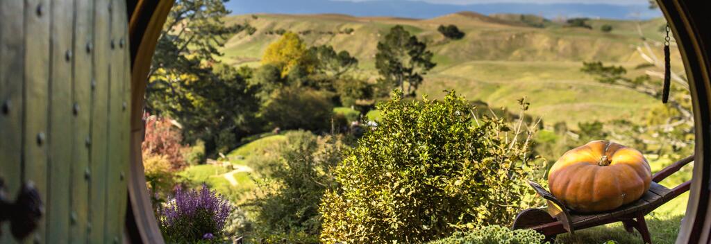 When farmer Russell Alexander looked at his Waikato farm he saw 500 hectares of prime farmland and the result of decades of hard work. When director Sir Peter Jackson peered over the fence with his binoculars, he saw the bucolic English countryside and the perfect setting for a Hobbit village. These days, Alexander Farm is happily both farm and filmset. Surrounded by paddocks of Alexander’s sheep, Hobbiton™ Movie Set Tours comprises 44 hobbit-sized houses, a fully-fledged Green Dragon Inn, and a lake with a picturesque mill. You must imagine the rest: there are no people dressed as Hobbits, waving and smiling Disney-style, here (unless you count the occasional visitor).