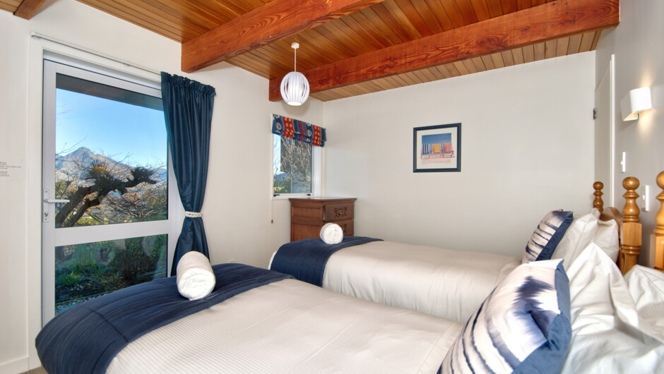 Superb location, on the shores of Lake Wakatipu with The Remarkables in view & only a short stroll into Queenstown. Large windows and skylights make the interior airy, bright and sun filled. Views from the house begin with the beautiful waters of Lake Wakatipu and reach from The Remarkables all the way round past the Kelvin Heights golf course down the lake to Mount Nicholas. On the entrance level is the kitchen, dining, lounge & powder room. Upstairs is the Master bedroom with ensuite & study, downstairs are 2 bedrooms, bathroom & laundry. The TV has free2air channels and is Netflix capable. We have the property 16B as well so if you are a larger group or 2 families who wish to holiday together then these two properties are perfect.