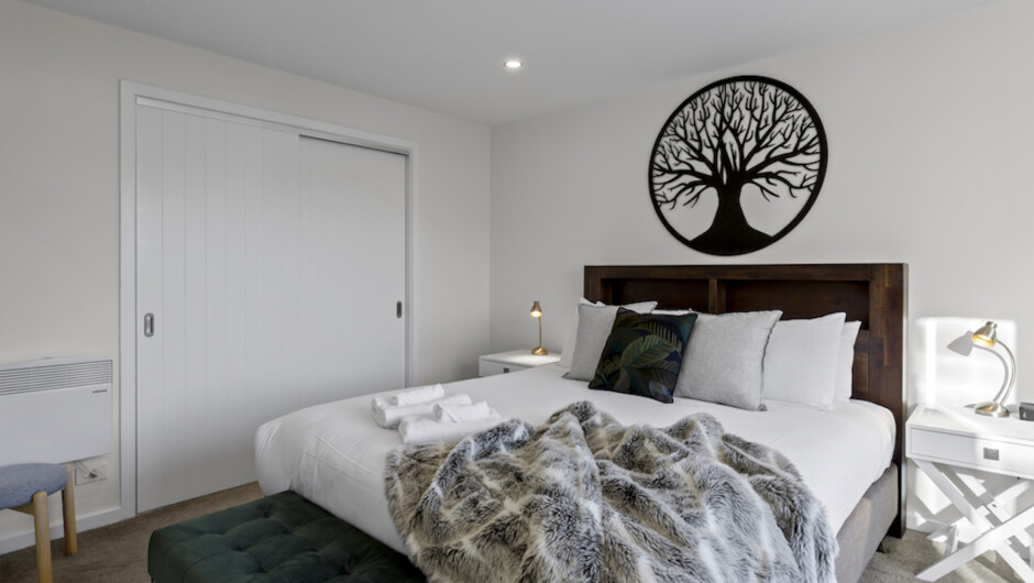 Bedding configuration: 1 x king bed, 1 x queen bed and 1 x set of singles. Heat pump, gas fire and under floor heating. Air conditioning. WIFI, Netflix. 2 off-street car parks.