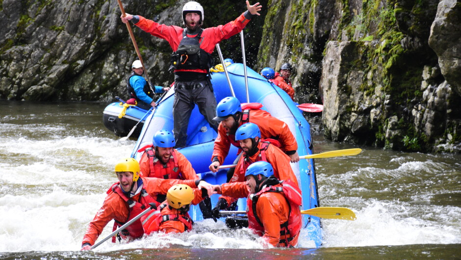 Te Awa Kairangi's Gorge carves through the heart of Kaitoke Regional Park, a pristine slice of native New Zealand forest. This untouched wilderness boasts ancient trees and a diverse array of native bird species. Just a quick 40-minute drive from Wellington CBD, Te Awa Kairangi offers the ultimate Grade 3 wilderness rafting adventure in New Zealand. Featuring a thrilling course with 62 rapids, an impressive 8-metre rock jump, inviting swimming holes, crystal-clear waters, and unbeatable vistas, our tour caters to everyone. Whether you're a nature enthusiast or an adventure seeker, this experience is bound to captivate and entertain. Join us for an unforgettable journey.