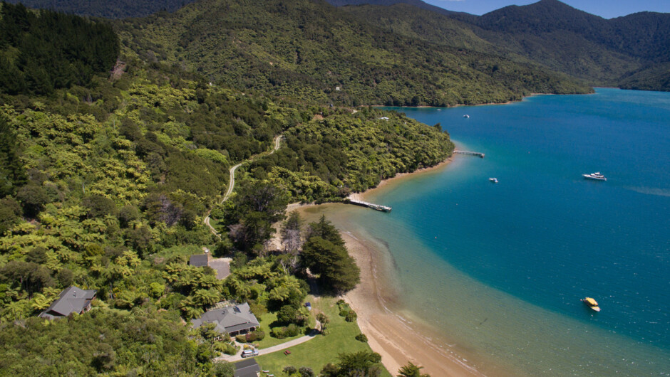 Situated at the end of Day two on the Queen Charlotte Track with options to walk or bike towards Ship Cove or towards Torea Bay and Anakiwa, Mahana Lodge is the place to stay. Our Chef's Table dining experience is not to be missed.