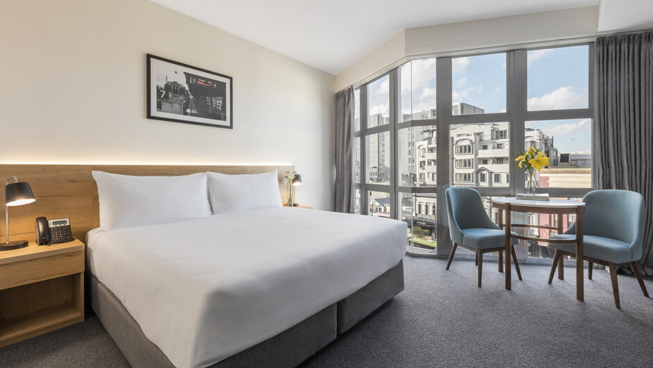 Oaks Wellington Hotel offers modern accommodation in the heart of Wellington’s entertainment precinct. Boasting spectacular views, within close proximity to the waterfront, the hotel features a range of convenient amenities including an on-site restaurant and bar, meeting facilities, car parking and gym facilities. The hotel is fresh and contemporary in its look, paying homage to the building’s history providing guests with a beautiful mix of history and style. Originally built in 1922 as an iconic Ford vehicle assembly plant it was then re purposed and now stands today transformed into a trendy and modern 9 storey hotel for guests to enjoy.