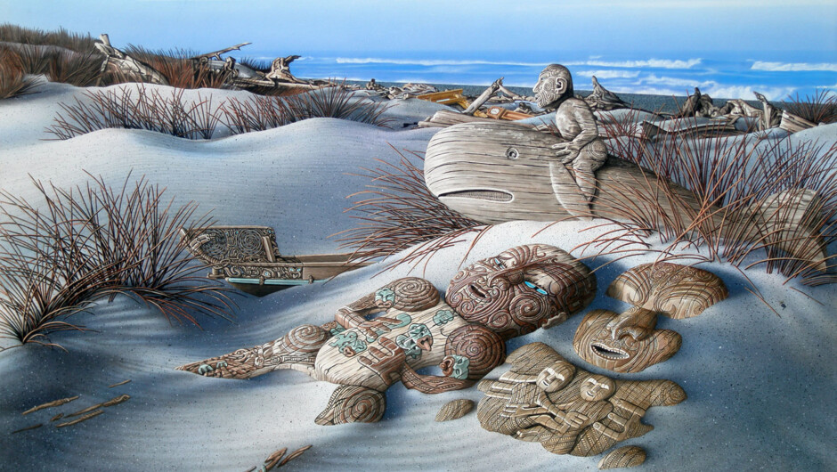 The carvings reflect the cultural history of Maori, great warriors, chiefs, war and fishing wakas, mythological characters, all carved by the great Maori carvers over the last four centuries. Come in and we will tell you their stories.